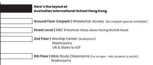 For over a decade, we have been faithful to follow God’s direction in seeking to build a new KIBC building. During the construction phase, we are thankful for God’s provision for not only one, but two places for our temporary relocation! Sunday mornings, worship services and Bible Study will take place at Australian International School Hong Kong. Throughout the week, our church offices and Kowloon Baptist Church Kindergarten will meet at Bethel Bible Seminary. Both locations are within walking distance of our KIBC property on Junction Road!